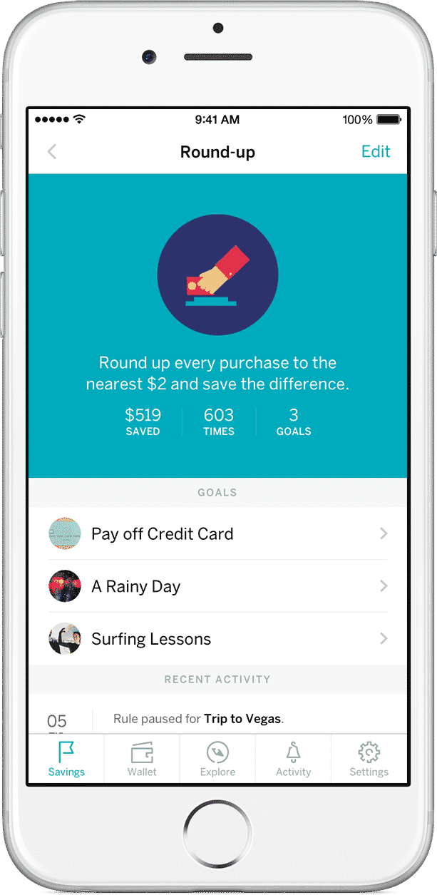 The Qapital App includes a unique way to help you save money by including a savings goal feature.